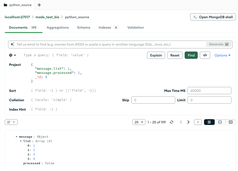 An alternative syntax uses dots and square brakets for array indexes, as for example in sensor[0].temperature. This alterante syntax is supported because it’s the way MongoDB Compass exports data to CSV format (see later on for an example).